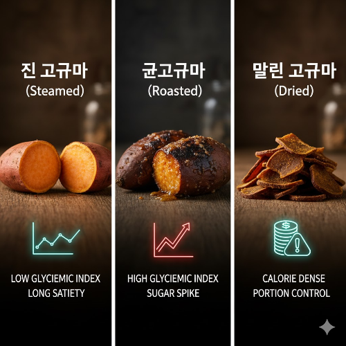 "다이어트하려고 고구마 먹었는데, 왜 살이 더 찌는 것 같죠?" 라고 하소연하는 분들이 있습니다. 범인은 바로 '조리법'에 있습니다. 똑같은 고구마라도, 어떻게 조리하느냐에 따라 혈당 지수(GI)와 칼로리가 달라지는 '다이어트의 배신'이 일어날 수 있습니다.