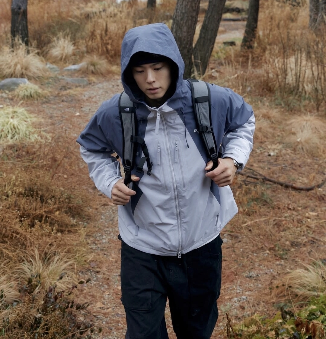 일단 가장 먼저 눈에 들어오는 건 스타일입니다. 아웃도어 자켓에 비니, 그리고 백팩. 이 조합은 사실 흔한데, 왜 이렇게 분위기가 다르냐면 ‘상황’이 다르기 때문이에요. 비가 오는 날, 살짝 젖은 공기, 흐린 하늘. 이런 요소들이 다 합쳐지면서 자연스럽게 감성이 만들어집니다.
