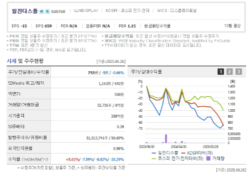 오늘의 상한가를 더 극적으로 이해하려면, 일진디스플이 그동안 어떤 길을 걸어왔는지 되돌아볼 필요가 있습니다. 사실, 이 종목은 한때 화려한 시절도 있었지만, 최근까지는 '하락'이라는 단어가 더 어울리는 종목이었거든요.