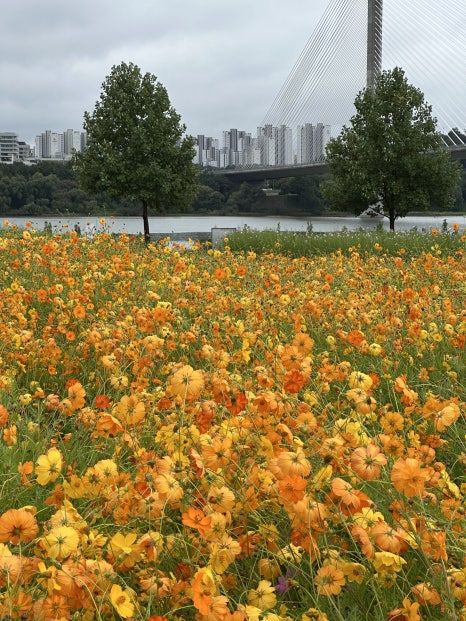 또한, 드넓은 잔디밭에 돗자리를 펴고 여유롭게 '피크닉'을 즐기기에도 완벽한 장소입니다. 집에서 간단한 도시락을 싸 와서, 꽃구경을 하다 지치면 잠시 누워 가을 하늘을 바라보는 시간은 그야말로 꿀맛 같은 휴식이죠. 공원이 워낙 넓기 때문에, 입구에서 자전거를 대여해 시원한 강바람을 맞으며 공원 전체를 둘러보는 것도 아주 좋은 방법입니다. 아이들과 함께라면 연날리기를 하기에도 더할 나위 없이 좋습니다.