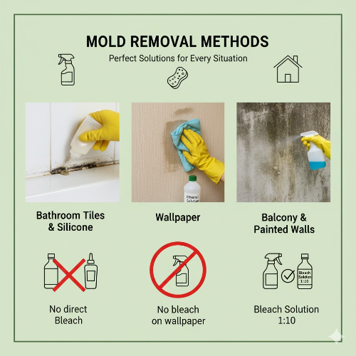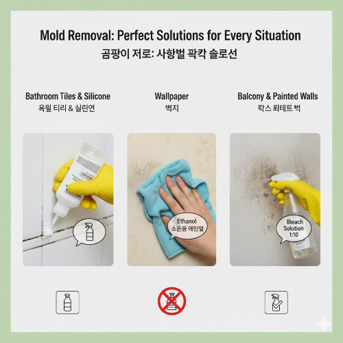 🧼 2. [제거편] '락스'가 만능? 상황별 곰팡이 완벽 제거법